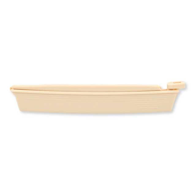 Pinza plástica, moldeada para cerrar el extremo inferior de las bolsas para ostomía que no tienen cierre integrado. Diseño de bisagra seguro y fácil de usar.